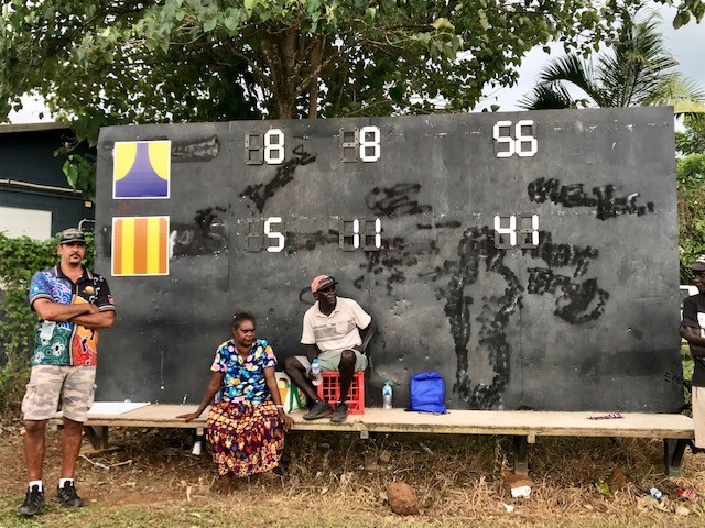 The local primary school Under 12's kicked off at 11:00am, followed by Lilydale Under 18's who had made their way up from Melbourne to partake in the footy fever on the day - a great experience for them that they will talk about for years to come. The Tiwi Ladies entertained us with their traditional songs and dances, followed by the teams coming out onto the field for the "No More" campaign linking of arms. The main event kick off was at 2:30pm when the Ranku Eagles and Tapalinga Superstars took to the field in a nail biting match, that had everyone on their toes cheering and barracking both teams on.